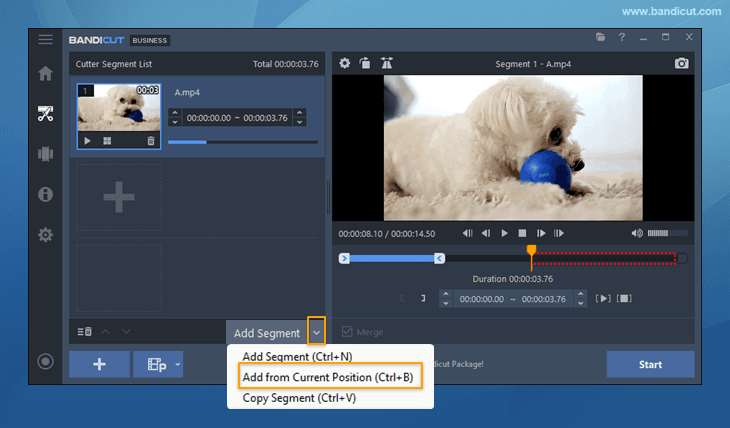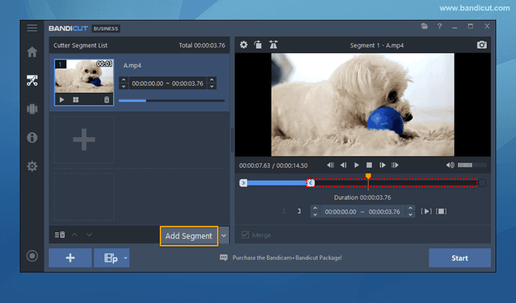 Step 4: Once all segments are set, check the 'Merge' option and click the 'Start' button.
